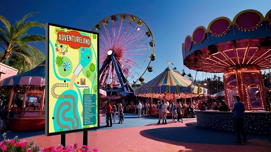Use displays for live Events, Ride Wait Times, Scheduling and More.